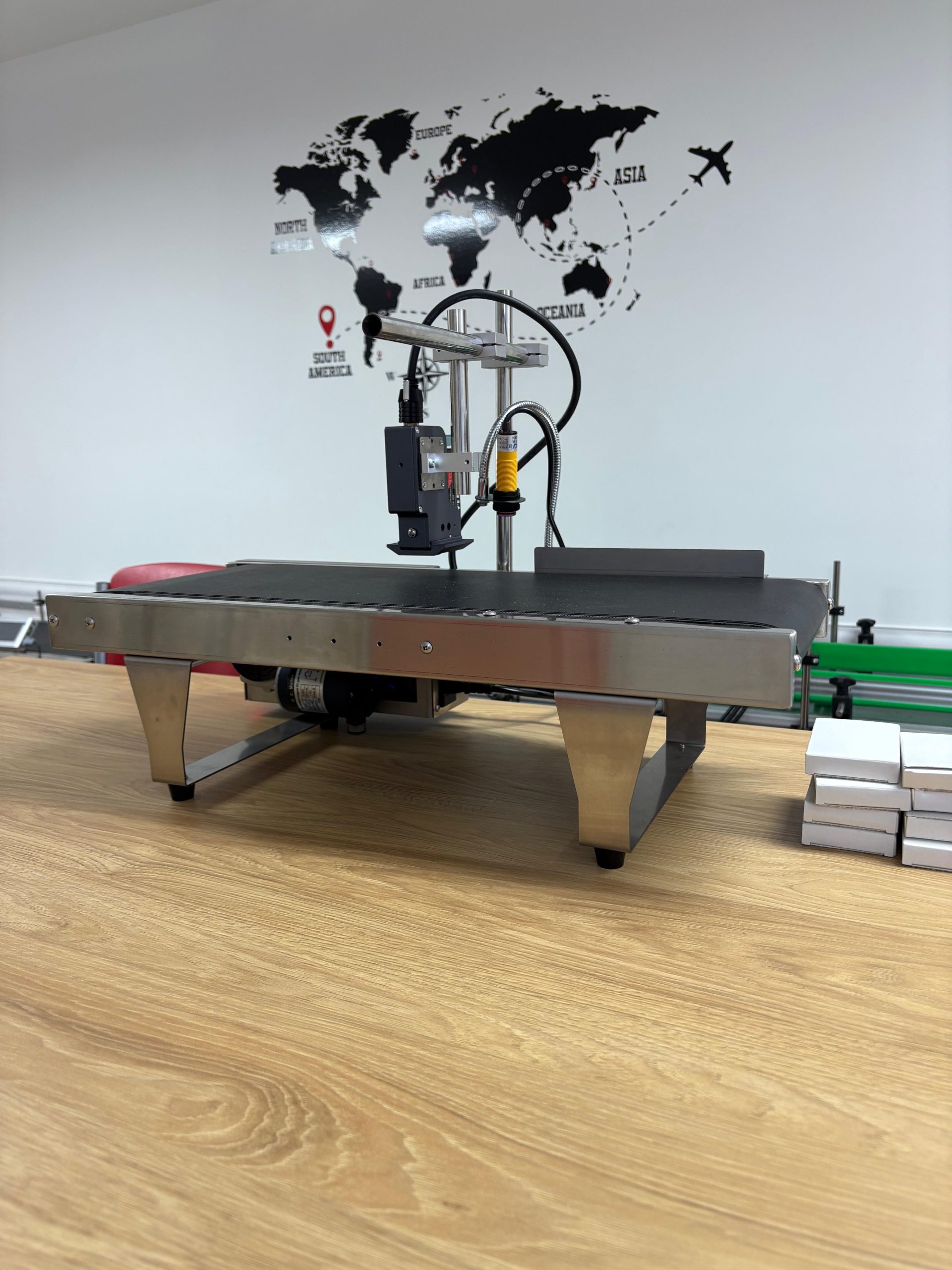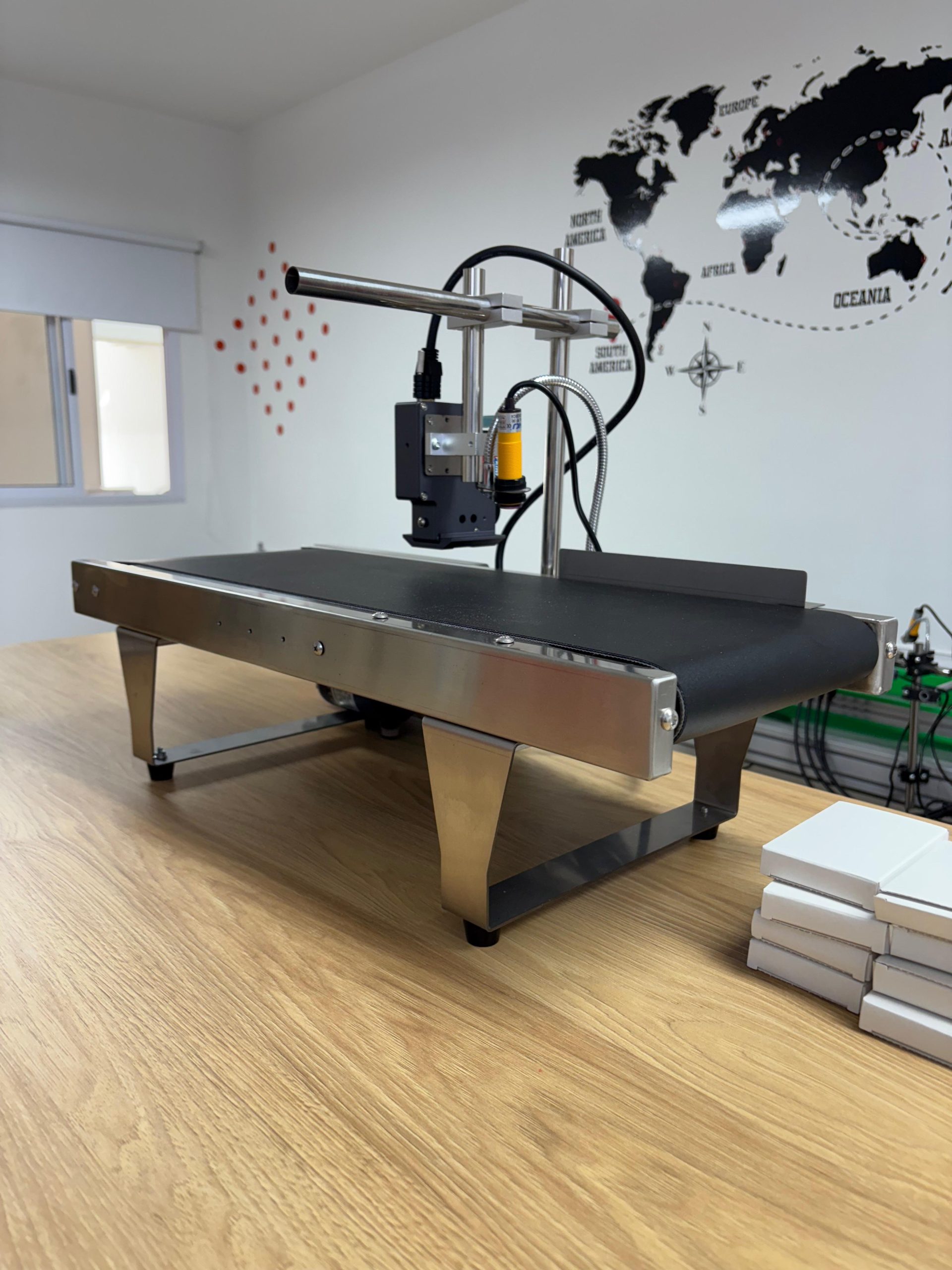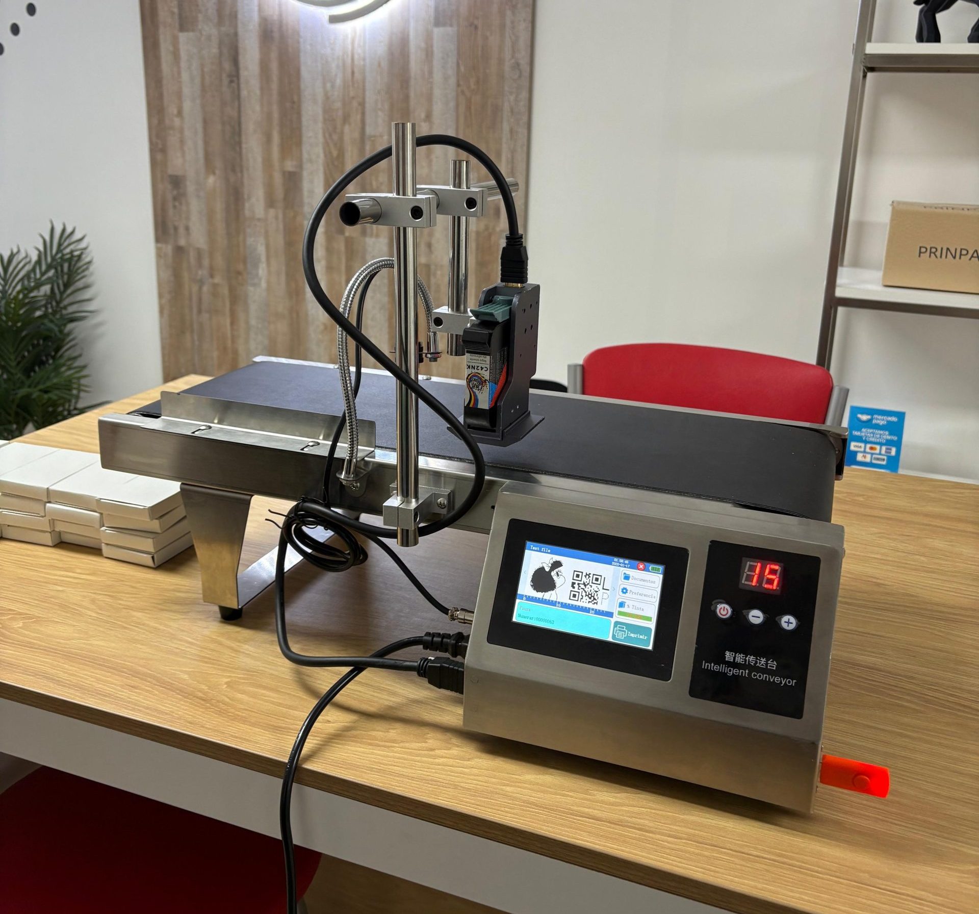 Cinta de transporte con impresora codificadora incluida.